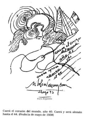 “L’Argentina inizia negli anni ’70 la sua verità. I tumulti passeranno, ma il suo popolo si mostrerà sano di mente e insegnerà. Gli stranieri arriveranno sulle sue coste e vi resteranno. L’uomo saggio in Argentina sarà”. (1968)