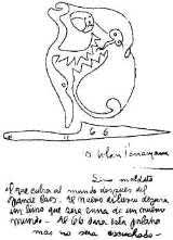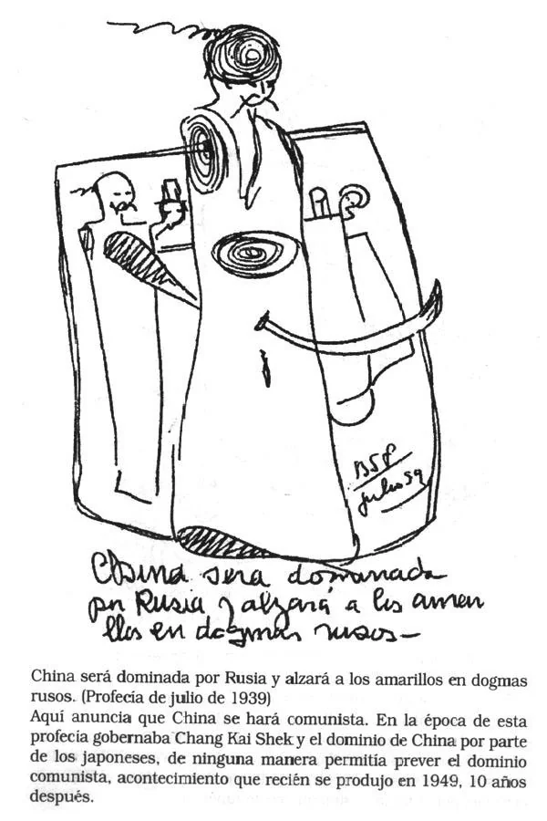 Psicografia: Molti dei suoi disegni trattano di una possibile terza guerra mondiale. In uno di essi, appare una mappa con figure di conflitti globali e il testo “Fuoco, carestia, pestilenza, morte ripete la giusta campana. Il mondo si avvicina alla conflagrazione”.