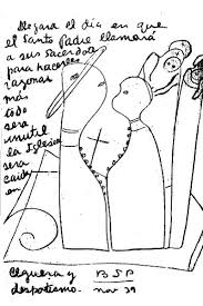Psicografia: Un disegno raffigura un Papa e una frase che recita:“Il Papa fuggirà da Roma nella sua fuga e nella sua angoscia raggiungerà l’America, mentre l’umanità cadrà“.