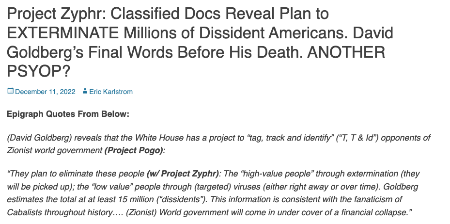C’è chi pensa che si sia trattato di uno psyop perché non si trova nessun David Elias Goldberg su Internet, né del suo Jewish Center of Antisemitic Study.