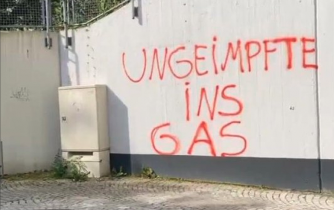 Traduco. Si legge “GAS PER IL NON VACCINATO”.