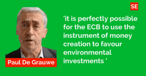 “E’ perfettamente giustificabile per la BCE creare denaro per finanziare gli investimenti nell’ambiente, non crea inflazione”, scrive Paul De Grauwe: il quale propone la creazione di “Bond Verdi europei”, ossia fare debtii eurocratici per combattere in cambiamenti climatici, insomma per uno scopo economicamente improduttivo (adesso capiamo meglio l’improvvisa promozione internazionale di Greta).