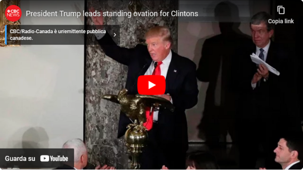 Il presidente Donald Trump ha definito Hillary Clinton “disonesta” e una “donna cattiva”, e poi il neo-presidente ha chiesto ai presenti al pranzo inaugurale di tributare a Bill e Hillary Clinton una standing ovation: