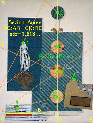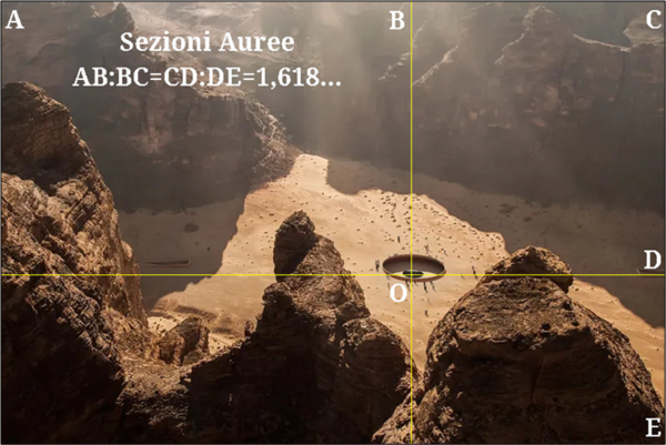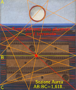 Tutte le linee che passono per il centro segnato in rosso sfiorano i pulsanti segnati sull’immaginario quadro di controllo dell’azione tellurica di devastazione. La Sezione Aurea