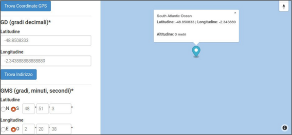 5. Ora ci si appresta a fare una ricerca della latitudine e longitudine dei due casi suddetti e per essi le soluzioni sono 4 con gli orientamenti seguenti indicati nelle seguenti figure: