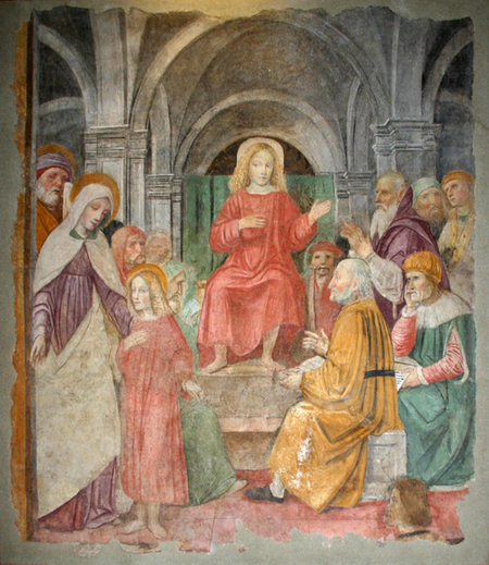 Affresco di Ambrogio da Fossano, detto il Borgognone (1455-1522): Gesù dodicenne fra i dottori nel tempio (Milano – Museo di S. Ambrogio