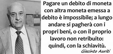 Poiché democrazia significa sovranità politica popolare, il popolo deve avere anche la sovranità monetaria che di quella politica è parte costitutiva ed essenziale in un sistema di democrazia vera o integrale in cui la moneta va dichiarata, a titolo originario, di proprietà dei cittadini sin dal momento della sua emissione.”