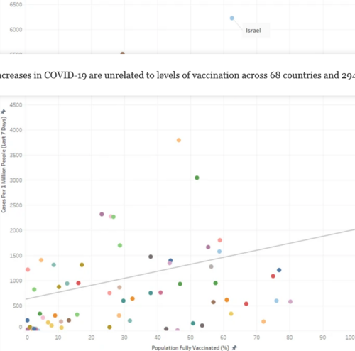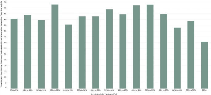 Allo stesso tempo, Israele, che è stato salutato per i suoi rapidi ed elevati tassi di vaccinazione, ha anche visto una sostanziale recrudescenza dei casi di COVID-19 [3]. Abbiamo studiato la relazione tra la percentuale di popolazione completamente vaccinata e i nuovi casi di COVID-19 in 68 paesi e in 2947 contee degli Stati Uniti.