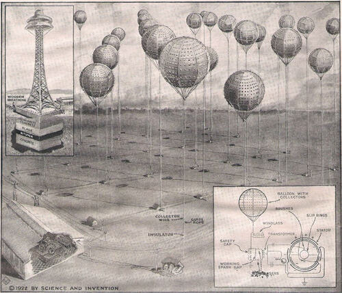 Non solo, ma come sottolinea l’inventore, non si verificano temporali devastanti nei pressi di queste centrali aeree, perché i palloni non solo agiscono come parafulmini, ma scaricano rapidamente la più grande nuvola di tuono, in modo sicuro e silenzioso attraverso le loro fessure di scintilla a terra.