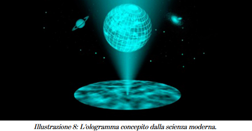 In altro modo le cartografie in esame, nel loro insieme possono far parte di un modello olografico dell’universo, secondo il quale il nostro universo sarebbe, appunto, un grande e complesso ologramma. (illustr. 8) Questo in base alla ricerca che ha coinvolto «fisici e astrofisici teorici di Regno Unito, Italia e Canada, in particolare dell’Università di Southampton in Inghilterra, della Sezione di Lecce dell’INFN e dell’Università del Salento in Italia, del Perimeter Institute e dell’Università di Waterloo in Canada.