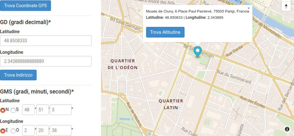 Figura 8: Coordinate Musée de Cluny di . Lat. 48°51’03’’N, long. 2°20’38’’E. Vedi: Qui