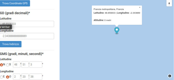 Figura 9: Coordinate Francia metropolitana.Lat. 48°51’03’’N, long. 2°20’38’’W. Vedi: Qui