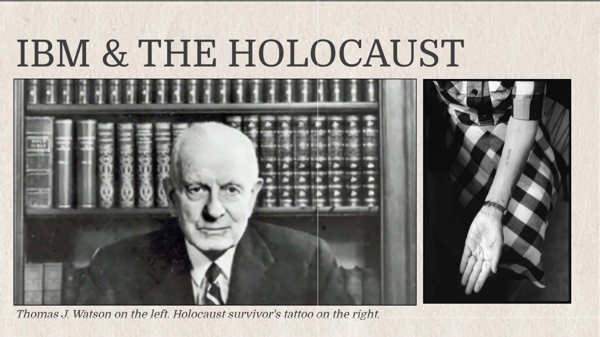Nel 1939, l’America non era entrata in guerra, ed era ancora legale commerciare con la Germania nazista. La nuova filiale polacca di IBM, Watson Business Machines, aiutò la Germania ad automatizzare lo stupro della Polonia. La filiale fu chiamata per il suo presidente Thomas J. Watson.