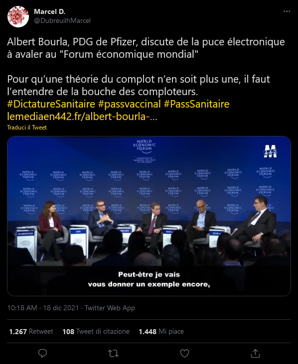 Albert Bourla il nostro Angelo Custode il CEO di Pfizer, discute il microchip nella capsula della pillola da deglutire al “World Economic Forum”.