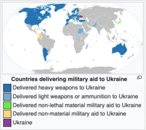 Entro marzo 2024, i governi occidentali si sono impegnati a fornire all’Ucraina aiuti per oltre 380 miliardi di dollari, di cui quasi 118 miliardi in aiuti militari diretti da parte di singoli Paesi. A dicembre 2024, i Paesi europei hanno fornito 155 miliardi di dollari in aiuti (militari, finanziari e umanitari) e gli Stati Uniti 123 miliardi.