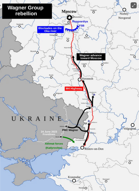 Prigozhin e le sue forze marciarono quindi verso Mosca e chiesero le dimissioni di Gerasimov e Shoigu. Gli aerei russi hanno attaccato il convoglio in avanzata, ma le forze wagneriane sono riuscite a respingere l’attacco. Il presidente bielorusso Lukashenko è intervenuto e ha negoziato una tregua.