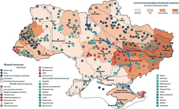 Non ci vuole un genio della geopolitica per vedere su una mappa che la regione del Donbass si collega alla Crimea e che il Donbass è l’area più ricca di minerali dell’Ucraina: