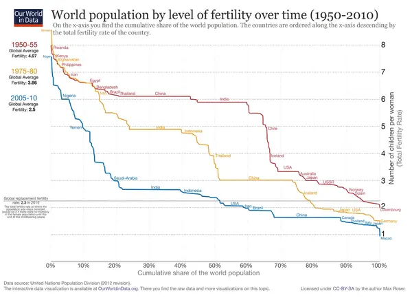 Anche l’Africa subsahariana è passata dai 7 figli di una generazione fa ai soli 4 di oggi. Per avere un’idea, questo è il tasso di fertilità degli Stati Uniti poco prima della Prima Guerra Mondiale.