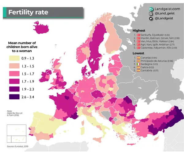 L’Europa non è da meno; il tasso di fertilità dei nativi europei è di circa 1,3, il che significa che si perde un terzo della popolazione a ogni generazione.