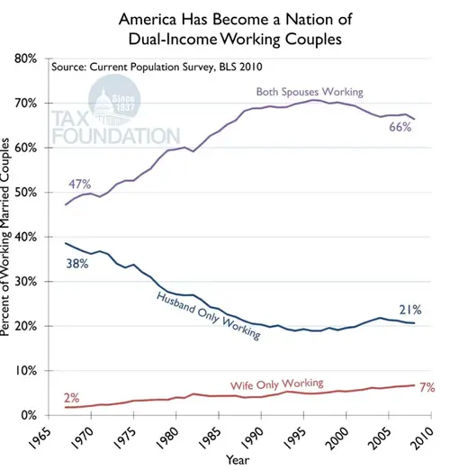 Nel frattempo, l’inflazione inarrestabile che ha caratterizzato la nascita della Fed ha spinto le madri a entrare nel mondo del lavoro.