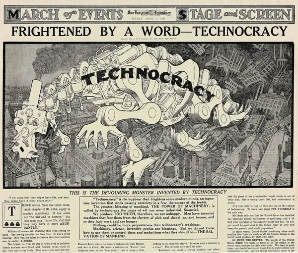 “La tecnocrazia non si preoccupa delle emozioni o degli antagonismi umani, né dei dogmi o delle credenze politiche… La tecnocrazia è sinonimo di ricostruzione e di una nuova forma di controllo…”