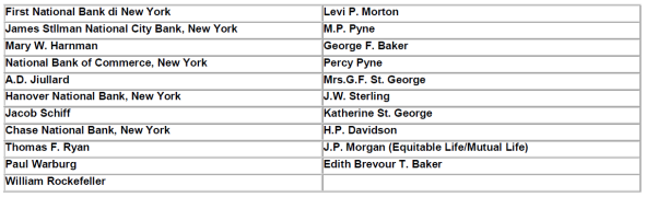 I personaggi qui sotto possedevano banche che a loro volta possedevano azioni della FED. Le banche
