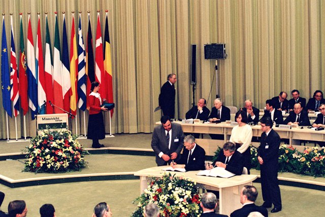 7 Febbraio 1992 Giulio Andreotti come Presidente del Consiglio assieme al Ministro degli Esteri Gianni deMichelis (Membro dell’Aspen Institute) e il Ministro del Tesoro Guido Carli (già governatore di Bankitalia) firmano il Trattato di Maastricht, il 7 febbraio 1992 per l’entrata nell’Unione Europea. Così facendo,l’autonomia delle banche centrale stava entrando in tutti gli ordinamenti giuridici dell’Unione Europea pereffetto del Trattato (articolo 107).