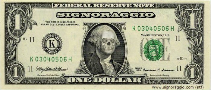 Questi “Fantasmi Giuridici” sono privati, appartengono a Banche Private di Banchieri Privati, e quindirispetto al Cittadino (ignaro, ignorante, indifeso e spesso indifferente) adoperano la logica del ‘servirsi’ e non del ‘servire’, unico comportamento etico (v. Giacinto Auriti). Come tutte le Corporation, le Banche non sono orientate all’Etica ma al Profitto (v. Domenico De Simone). I politici sono “camerieri dei banchieri” per quei personaggi che hanno saputo ‘vedere’ al di là della cortina di fumo e menzogna che cela la vera realtà del sistema bancario e finanziario dell’Italia e di tutto il Mondo e che si chiama Usurocrazia (v. Ezra Pound). Se lo Stato stampasse la propria moneta, come conia le proprie monetine, si estinguerebbe di colpo il mostruoso Debito Pubblico che grava su tutti Noi, i Nostri Figli e quindi il Nostro Futuro. Si spezza così la catena della schiavitù della moneta-bancaria, catena forgiata dalla creazione dal nulla della monetadebito (‘ex nihilo’ – v. Maurice Allais). Il Popolo, di nuovo padrone della propria Sovranità Monetaria,tornerebbe a Vivere.