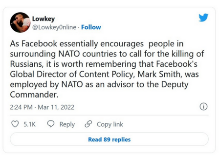 Il Dipartimento di studi bellici del King’s College di Londra, che conta tra il suo personale ufficiali della NATO ed ex ministri del governo ed è noto per la formazione delle migliori spie occidentali, fornisce anche la forza lavoro per molte delle più grandi aziende di social media. Tra questi, naturalmente, Facebook, TikTok, Google e Twitter.