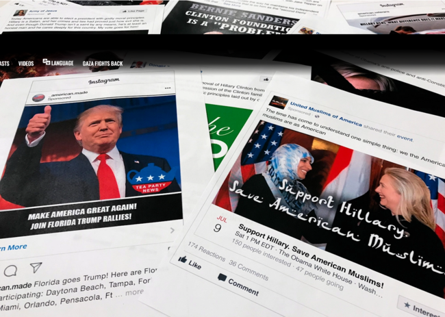 Stampe di post di Facebook e Instagram che l’intelligence statunitense ritiene collegati a campagne di disinformazione russa. Jon Elswick | AP