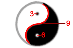 - I numeri 3 e 6 rappresentano lo Yin e lo Yang in forma di magnetismo e il numero 9 è la curva S.