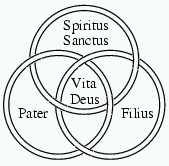 Oggi gli anelli borromei sono comunemente utilizzati come simbolo della Trinità. La prima fonte di cui siamo a conoscenza è un manoscritto del XIII secolo conservato nella Biblioteca Comunale di Chartres. Esso conteneva quattro diagrammi, uno dei quali è mostrato qui sopra. Al centro, all’interno di tutti i cerchi, si trova la parola `unitas’; le tre sillabe di `tri-ni-tas’ sono distribuite nei settori esterni. Purtroppo il manoscritto è andato distrutto in un incendio nel 1944. La copia qui riportata è stata riprodotta in un manuale di iconografia cristiana [Didron-Didron], insieme alle descrizioni delle altre tre figure. Le etichette di queste altre figure sono riportate di seguito. Si tratta di: