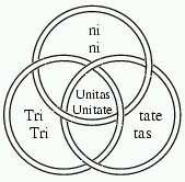 le frasi “Trinitas Unitate” (tre in uno) e “Unitas Trinitate” (uno in tre) distribuite sul diagramma.