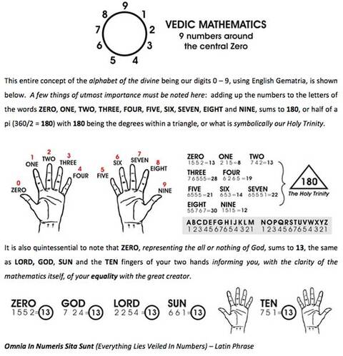 Gli antichi popoli vedici, responsabili delle più antiche scritture indù, hanno ribadito la supremazia di questo sistema base-ten ponendo nove numeri intorno a un cerchio/zero ed eseguendo la matematica in questo modo. Posizionando il 9 in alto e muovendosi in senso orario intorno al cerchio, queste 9 cifre racchiudevano lo zero, che svolgeva la sua magia come segnaposto per le altre cifre (vedremo di nuovo l’uso di questo modello matematico più avanti nel testo).