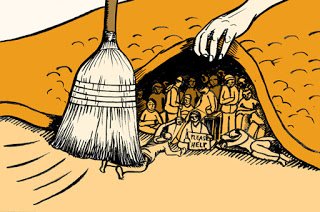 E dalla vista scompare tutto. Perfino Assange, perfino i picciotti eolici di Salvini, perfino la Raggi. Libia, Siria, Yemen, Venezuela, Netaniahu, la triade Pompeo-Bolton-Pence, la Corte Penale Internazionale che processa solo gente di pelle scura, la Via della Seta, Yemen, Assange, Chelsea Manning, Venezuela, Siria, Libia, la bolla del Russiagate, le sanzioni genocide, Netaniahu, i brindisi e gli evasori di Juncker, i nazisti di Kiev, le Ong del commercio umano, la pulizia etnica fatta dai curdi, le armi di distruzione di massa di Saddam, le bombe di un Gheddafi senza aerei, i mercenari terroristi e un miliardo di altre balle passate sotto il naso della FNSI e dell’Ordine dei Giornalisti senza che se ne accorgessero. Non essendo colpa di papà e mamma, non si sa bene a chi attribuire tutto ciò. Quindi via, sotto il tappeto.