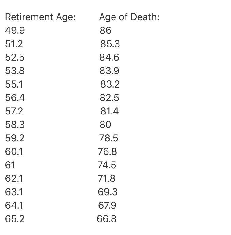 Se ti ritiri dal lavoro a 55 anni, vivrai minimo fino a 80 anni, se lavori fino a 65 anni morirai subito dopo, e non ti godrai la pensione. Lo studio shock