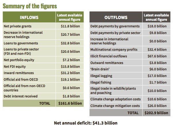 In realtà è una chimera! Il quadro degli aiuti allo sviluppo e la vigilanza messa in atto dai Paesi più ricchi e intermediata attraverso il volere del Fondo Monetario Internazionale e della Banca Mondiale possono essere visti più come un aspirapolvere gigante destinato ad aspirare le risorse e la ricchezza finanziaria dei Paesi più poveri, con mezzi legali o illegali a seconda di quali generano i flussi più ingenti.