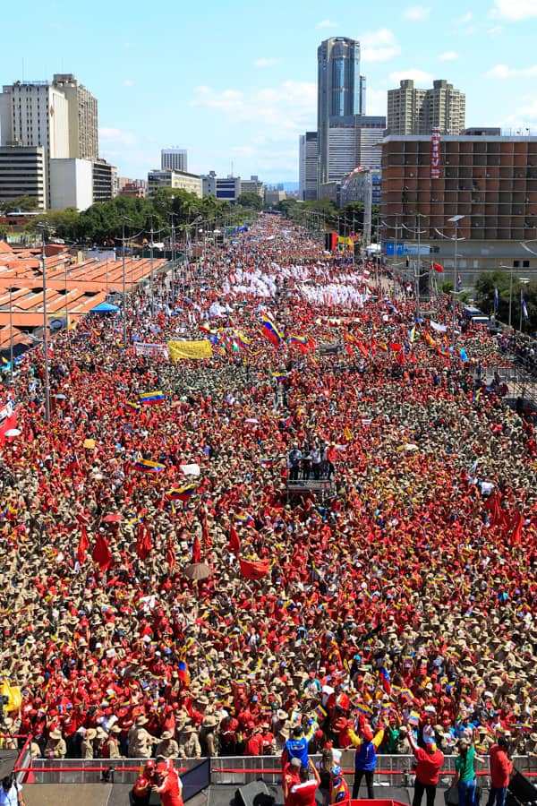 Come, del resto, i venezuelani che, dalle immagini presso di noi trasmesse, affluiscono in masse oceaniche a ogni fischio dell’autentico presidente. Quello che, dopo aver fatto saltare un po’ di teste di motociclisti chavisti sui cavi stesi attraverso la strada (tecnica delle guarimbas, ricordate), tanto è piaciuto a Trump e al veterano delle macellerie in Salvador, Guatemala e Nicaragua, Abrams, da nominarlo presidente del Venezuela. Come potevano, Mattarella e il suo portalettere Moavero, non essere d’accordo? Quanto alle immagini, vedrete prima un Guaidò con un capannello di gente e poi, a stacco, un’immane folla. Guardate bene: c’è un sacco di rosso chavista. Vecchio trucco, facevano così anche con le dimostrazioni contro Assad.