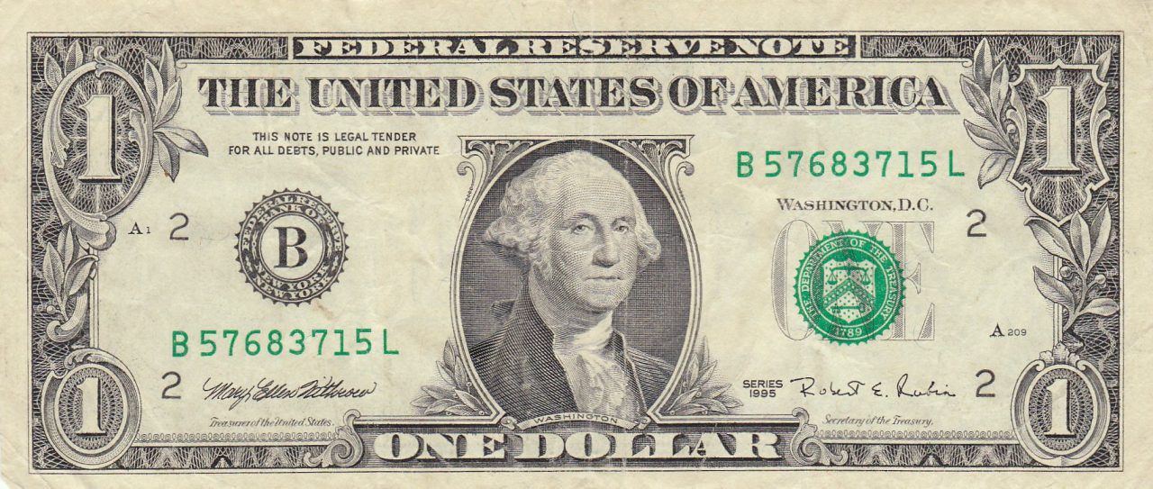 L’Aquila è un altro simbolo di Horus, rappresentato dai geroglifici egiziani con la testa di falco, famiglia dei rapaci e di conseguenza appartenente alla famiglia dell’aquila. La scritta “E pluribus Unuum” (Da molti, uno), impressa sul nastro che l’aquilla stringe col becco, significa che il verbo degli Illuminati sarà diffuso a tutte le nazioni per costituire un governo mondiale; anche questa scritta ha 13 lettere. Nel bagliore a forma di cerchio, sopra l’aquila, vi sono 13 stelle a 5 punte (i Pentalfa massonici) che insieme formano la stella a sei punte. Intorno alle 13 stelle sono disposti in cerchio (simbolo di Eternità) delle nuvole, con una corona di luce (la Gloria), a simboleggiare, in un primo tempo, la presenza di Dio, ma nessun raggio di luce fende le nuvole e così il Signore viene fatto prigioniero del cerchio che è simbolo anche del Serpente. Sotto la cresta è disegnata l’Aquila, e lo scudo posto su di essa ha (torna il solito numero) 13 bande verticali e, ancora, nell’artiglio destro è stretto un ramo d’olivo con 13 foglie e 13 olive, e con l’artiglio sinistro tiene 13 frecce. Il numero 13, nel fregio di sinistra, è riipetuto per ben 6 volte, cioè per tante volte quanto è il numero dell’empietà: 13×6=78. Riducendo cabalisticamente, 7+8=15, e ancora 1+5=6, cioè ancora il numero del nome della Bestia, dell’empietà; empio è Satana che si presentò come Serpente; il ramo d’olivo retto dall’Aquila, ricalca, nella forma, il Caduceo, emblema di Anubi (fratello di Osiride), cioè il Serpente. Passiamo al recto della banconota, lato che riporta l’effige di George Washington, primo presidente degli Stati Uniti d’America. Sulla figura dii George Washington si potrebbe scrivere un libro, ma limitiamoci a dire che fu iniziato alla massoneria nel 1752 (quando aveva meno di ventuno anni) presso la Fredericksburg Lodge n. 4, in Virginia. Nel 1784 ricevette il grembiule in satin bianco dell’Holy Royal Arch da Gilbert Lafayette, l’aristocratico che ebbe una forte influenza sulla Rivoluzione francese. Nel 1788 fu nominato Gran Maestro dell’Alexandria Lodge n. 22, in Virginia. Come si può capire era un personaggio molto influente nella massoneria. Alla sinistra di Washington, sulla banconota, compare un cerchio di colore verde rappresentante il simbolo del Dipartimento del Tesoro (Department of the Tresury) e una data, il 1789. La data indica la nascita del Dipartimento del Tesoro statunitense, ma coincide anche con quella della Rivoluzione francese, che guarda caso, la massoneria ha contribuito alla sua preparazione intellettuale e ha svolto un ruolo determinante nelle agitazioni. Il logo risulta pregno di simboli massonici: scudo, bilancia, squadra, chiave e tredici punti. La squadra è lo strumento principe del lavoro massonico, che racchiude il rigore morale e la perfezione. La chiave rappresenta la conoscenza esoterica che i fratelli massoni si tramandano e la bilancia indica l’equilibrio tra le forze opposte.