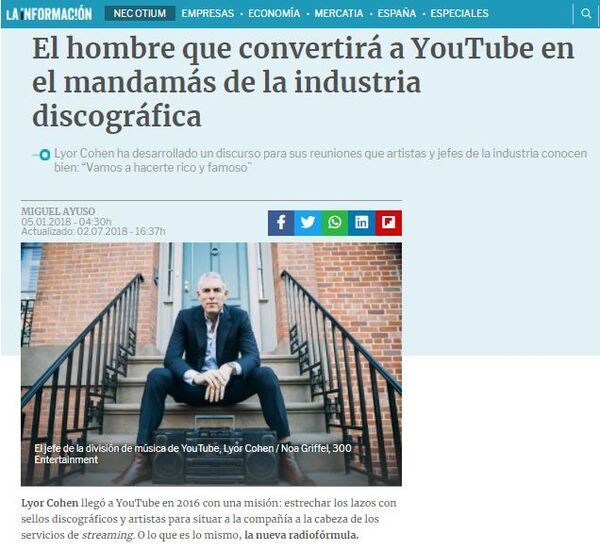 Lyor Cohen è arrivato a YouTube nel 2016 con una missione: rafforzare i legami con