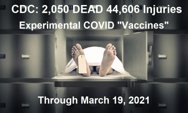 L’ultimo rapporto del database europeo EudraVigilance afferma che entro il 20 marzo 2021 si sono verificati 4.567 decessi e 199.213 effetti collaterali di varia gravità dopo aver ricevuto i tre “vaccini” sperimentali (Pfizer, Moderna, AstraZeneca).