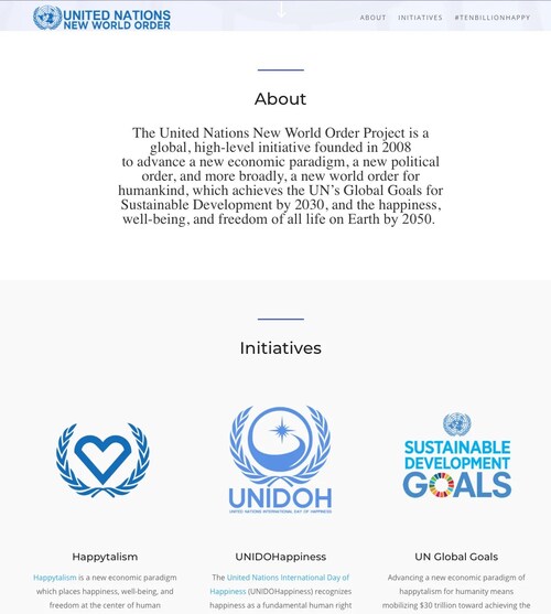 Schermata del 2020 del sito web del Progetto Nuovo Ordine Mondiale delle Nazioni Unite. Fonte